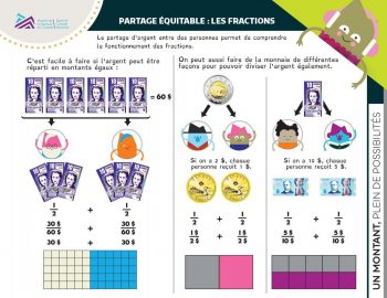Dans cette activité, les élèves utilisent la monnaie pour comprendre les relations qui existent entre l’argent et les fractions. Ils trouvent aussi des séquences leur permettant de compter plus facilement des montants élevés.