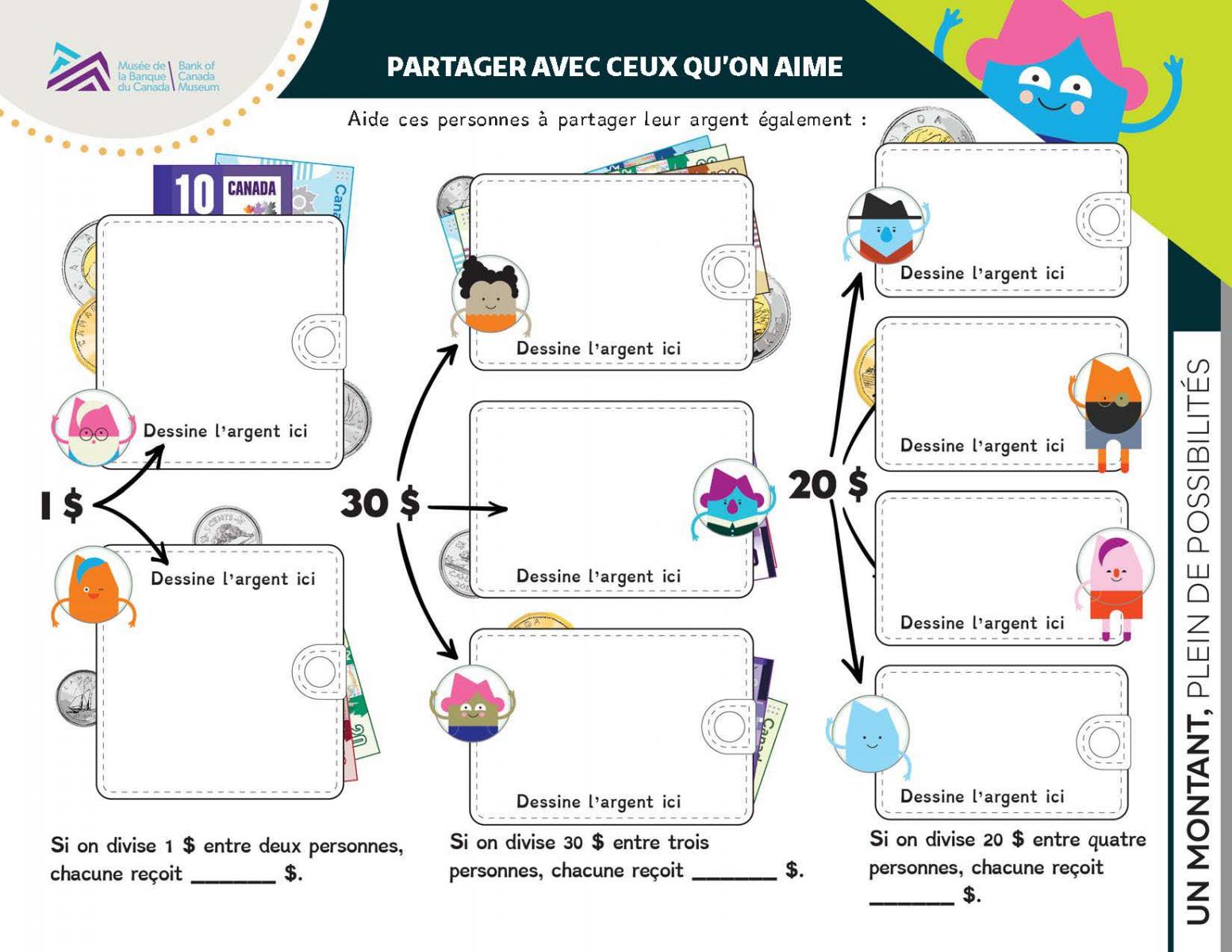 Si vous avez le temps, demandez à vos élèves de s’exercer à partager de l’argent de façon concrète :
