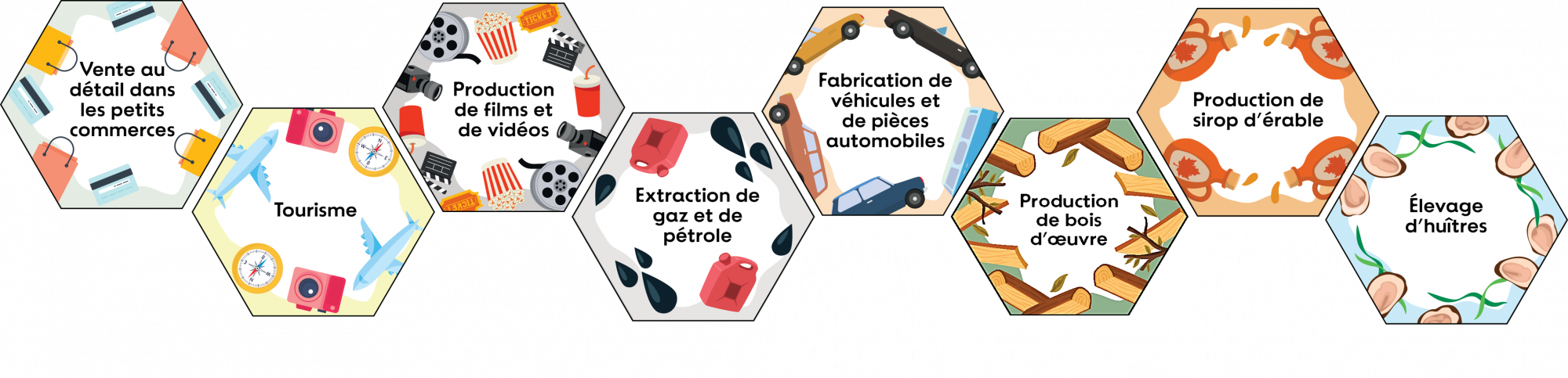Expliquez à vos élèves que les huit secteurs que vous venez de leur présenter contribuent à l’économie canadienne, sans nécessairement faire tous partie des secteurs les plus importants ou les moins importants. Ils représentent plutôt un éventail diversifié de secteurs de différentes tailles et régions; certains d’entre eux vont peut-être les étonner !