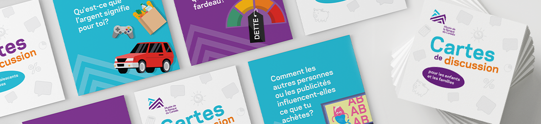 Ouvrez une discussion sur l’argent et les finances grâce à nos cartes à questions. Choisissez entre deux paquets de cartes : l’un destiné aux enfants et à la famille, l’autre aux adultes et aux adolescents.