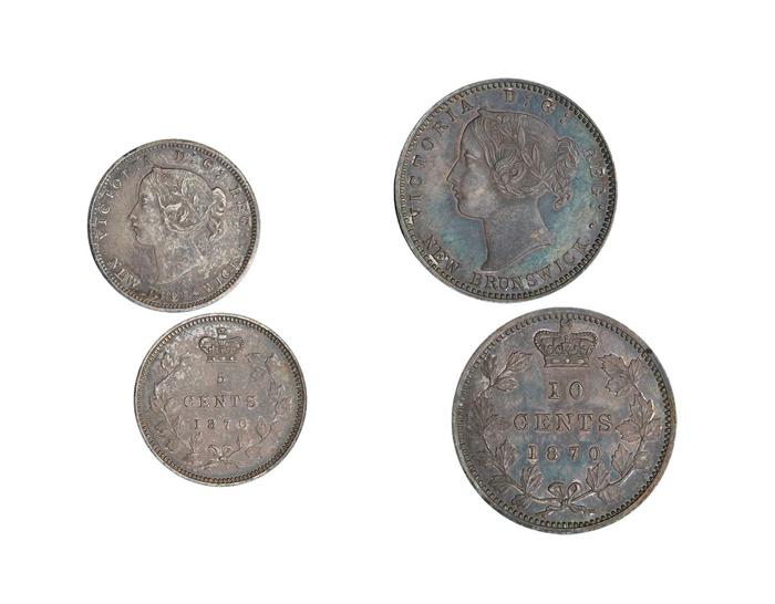 En 1870, le Nouveau-Brunswick faisait déjà partie de la fédération canadienne. Il n’était donc pas nécessaire que la province ait ses propres pièces. Ces pièces ont probablement été fabriquées par la Monnaie royale pour être présentées lors de l’exposition universelle de Sydney, en Australie, en 1870.