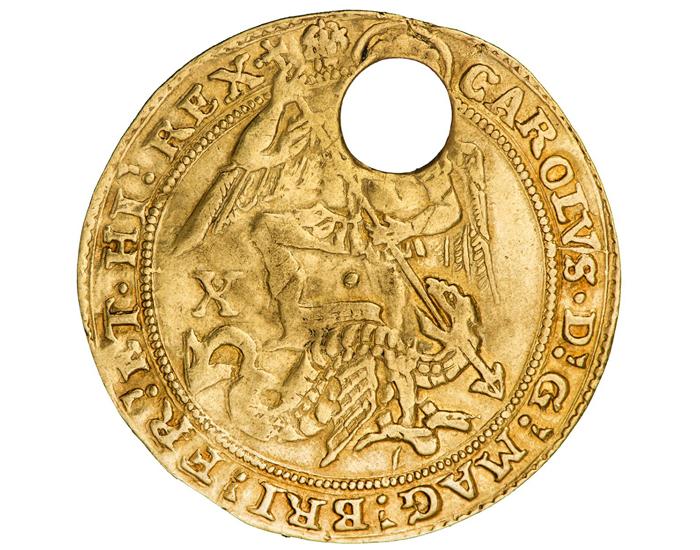 Source : 10 shillings (1 angel), pièce du toucher royal, Charles 1er, Angleterre, 1632 | 2019.6.1