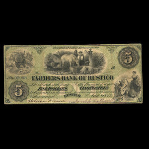 Canada, Farmers Bank of Rustico, 5 dollars : 2 janvier 1872