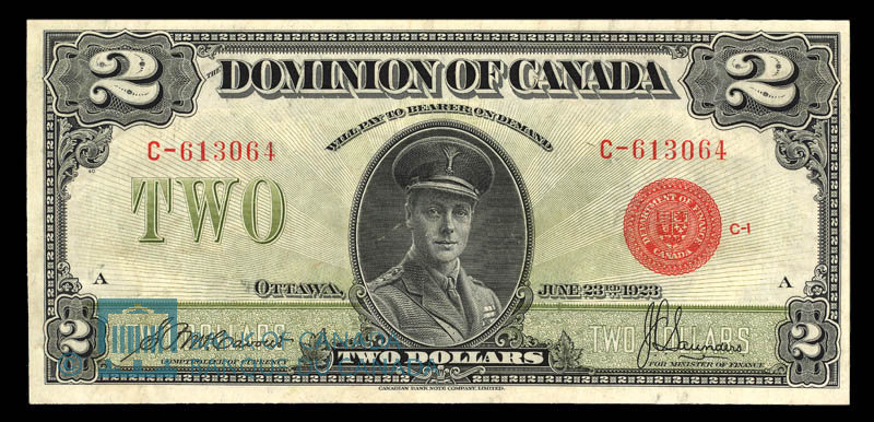 Canada, Dominion du Canada, 2 dollars : 23 juin 1923
