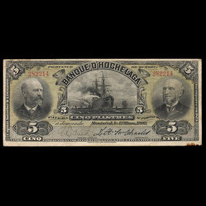 Canada, Banque d'Hochelaga, 5 piastres : 1 mars 1907