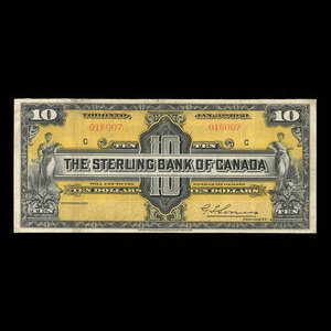 Canada, Sterling Bank of Canada, 10 dollars : 3 janvier 1921