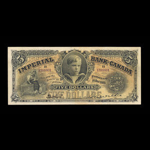 Canada, Imperial Bank of Canada, 5 dollars : 1 janvier 1910